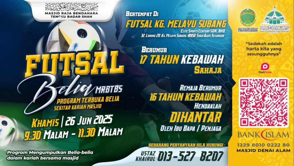 PROGRAM HARI ASYURA MUHARRAM 1447H Mohon disebarkan, semoga beroleh kebaikan. Sekian, terima kasih..#jommengajimalamjumaat#sama2berdoa#semogadosakitadiampunkan#demikebaikanbersama#jais. Hadirkan diri imarahkan Majlis Ilmu Taman-taman Syurga Allah.“Mengimarahkan Masjid Adalah Tanggungjawab Kita Bersama” Untuk makluman juga, pihak Masjid Denai Alam amatlah berbesar hati menjemput MUSLIMIN DAN MUSLIMAT bagi menjayakan program ilmu ini. Semoga beroleh manfaat. IKUTI KAMI DI MEDIA SOSIAL WhatsApp MRBTBS […]